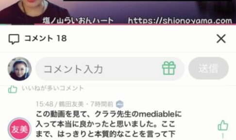 『この動画を見て、クララ先生のmediableに入って本当に良かったと思いました。ここまで、はっきりと本質的なことを言って下さる方は、クララ先生以外いません。ありがとうございます。』
