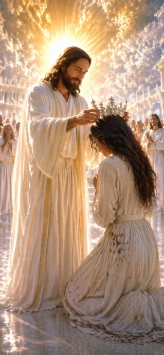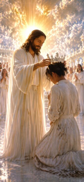 『イエスキリストが労働者に銀の冠を授ける』