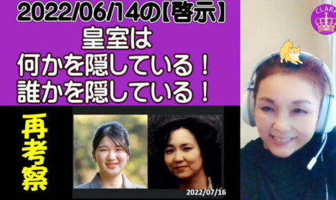 2022/06/14の【啓示】 皇室は何かを隠している!誰かを隠している! https://youtu.be/jCdESTZVpIA