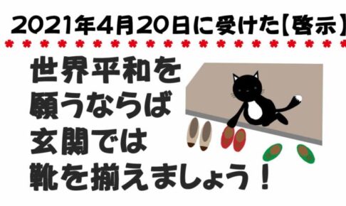 2021年4月20日【啓示】心の乱れは玄関の靴の乱れに現れる!一人一人靴を揃える事から始めよう! https://youtu.be/rJojjE4L2Ug