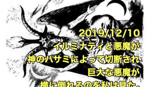 【けさの啓示】 先日の火山のような予知夢ではなく、 ビジョンによる啓示です。 先日の新天皇の悪魔継承儀式の大嘗祭の不発を皮切りに、世界中でことごとく、悪魔崇拝儀式での、悪魔とイルミナティの絆は、神のハサミによって切断され…