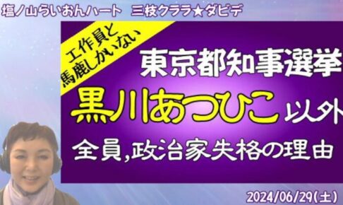 #つばさの党 #不当逮捕 #東京都知事選挙に行こう 【東京都知事選】工作員と馬鹿しかいない!黒川あつひこ以外の55人、全員、政治家失格!その理由について! https://youtu.be/q4w9RIHXpeg