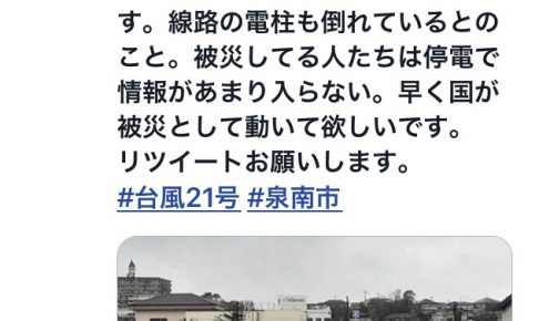 台風21号の被害を伝える映像は、どれも人の想像を超えるものばかりでしたが、特に電柱や電線が破壊されていく映像は、私の中に怒りが込み上げてきました。