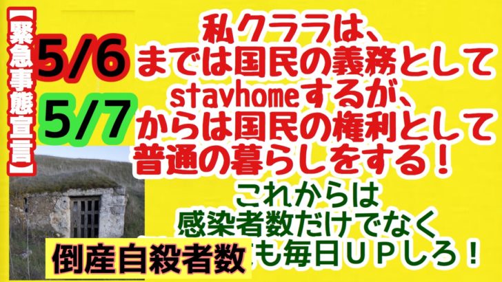 【緊急事態宣言】私クララは5/6までは国民の義務としてstayhomeするが、5/7からは国民の権利として普通の暮らしに戻る!私はね!