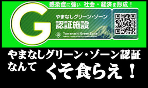 やまなしグリーン・ゾーン認証なんか、くそ食らえ! もうコロナ政治に振り回されない! 山梨県の皆様! 勇気を出して普通の暮らしをしませんか? https://youtu.be/ziZkiZW4F24